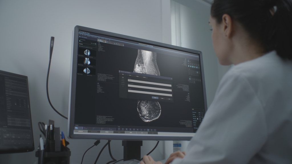 What is mammography? Mammography is an imaging examination of breast tissues with low-dose x-rays for any abnormalities, particularly breast cancer.